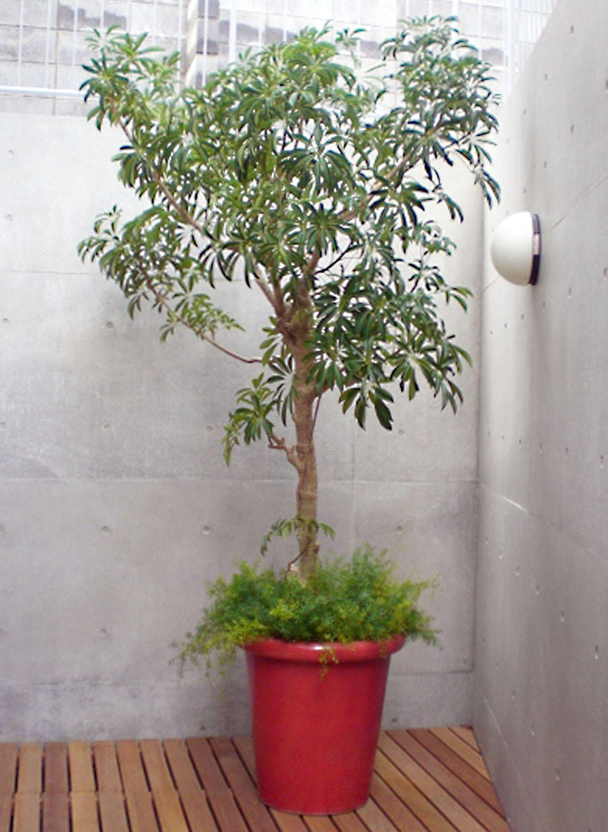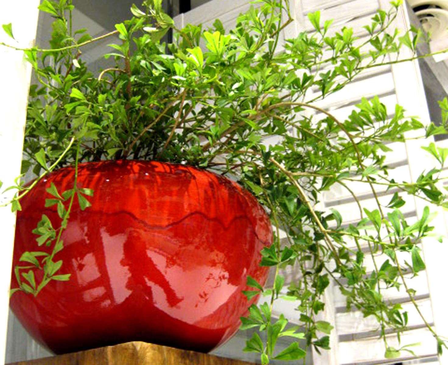真っ赤な器にグリーンを合わせ、お部屋のポイントに