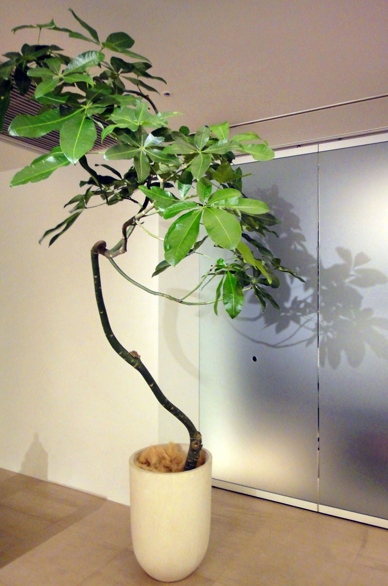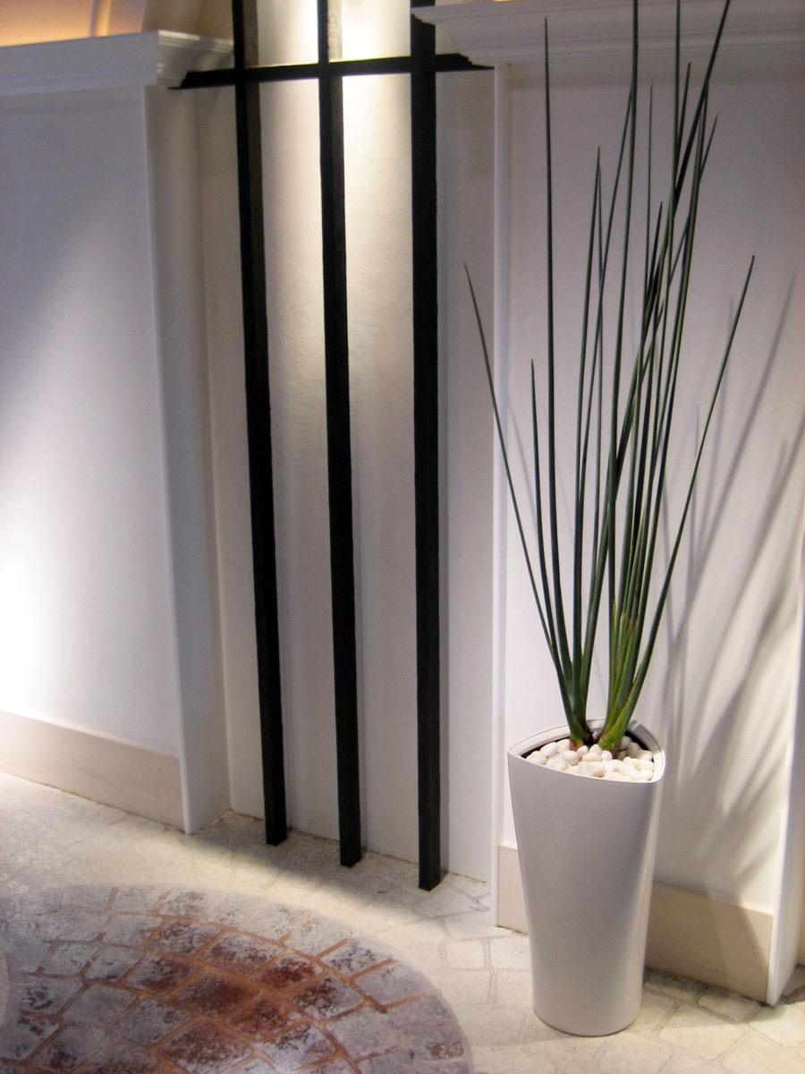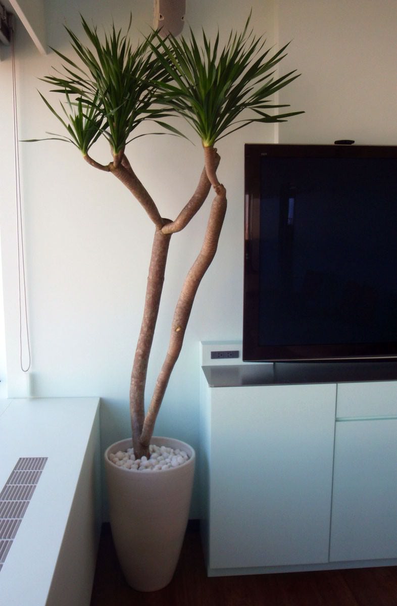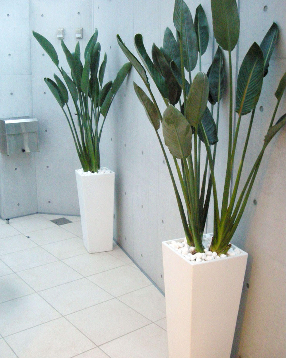 スリムな器にスタイリッシュな植物を組み合わせ、モダンな空間に