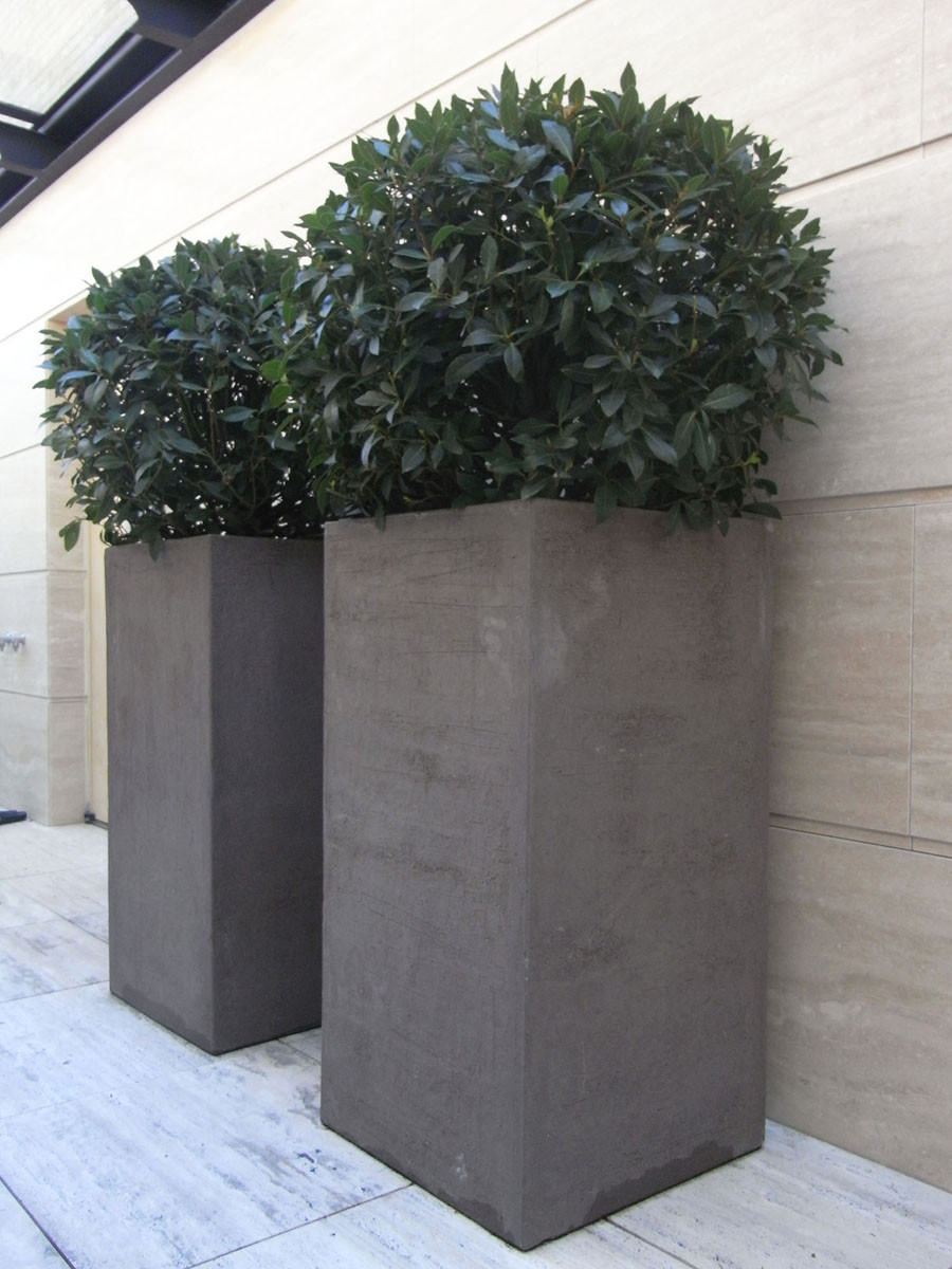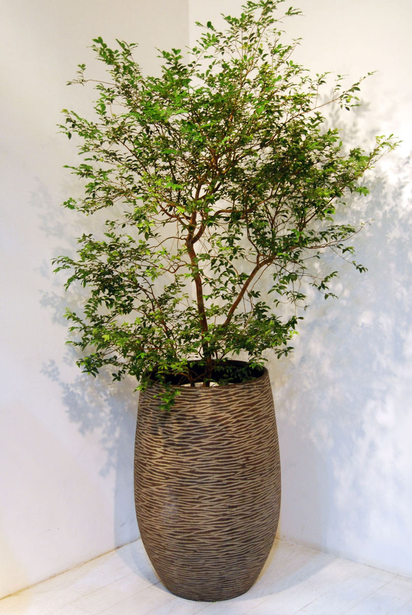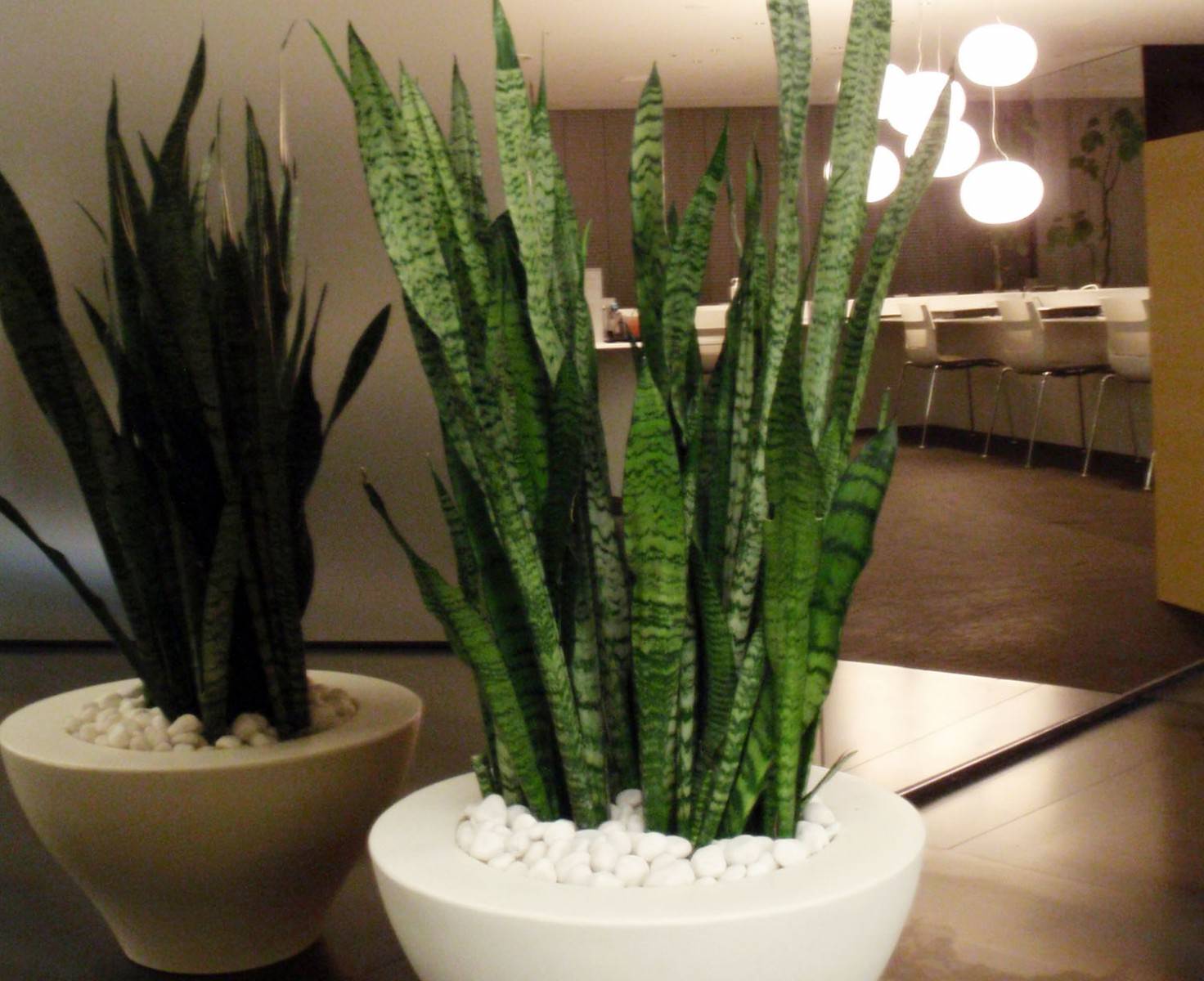 スリムな器にスタイリッシュな植物を組み合わせ、モダンな空間に
