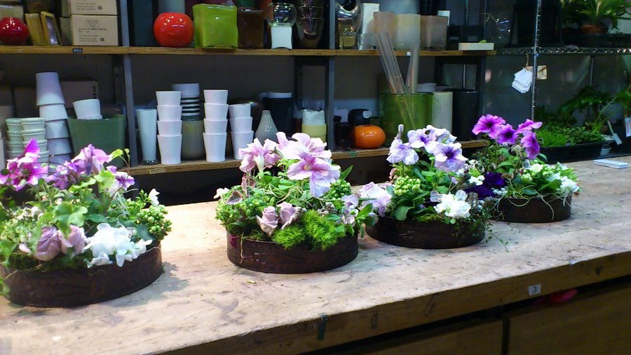 イメージは春のガーデニングアレンジ! 皆さんペチュニアの色によって全く雰囲気が変わり、各々のガーデンを作っていただきました。