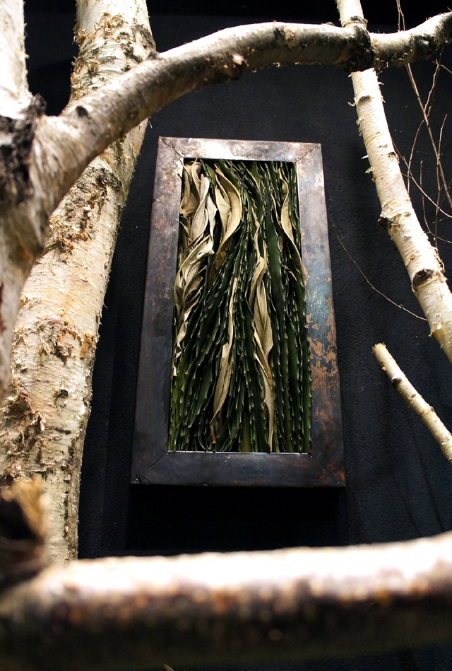 こちらは光の当たらない室内ですので造花のグリーンを使用しております。