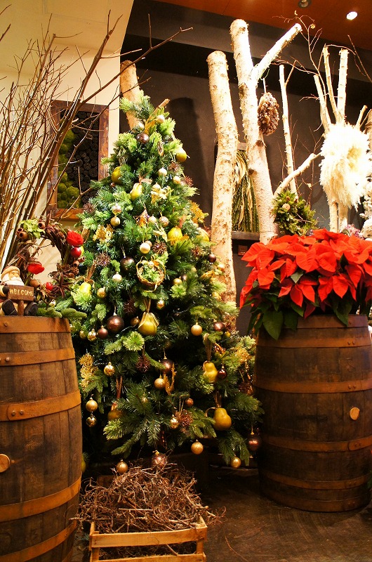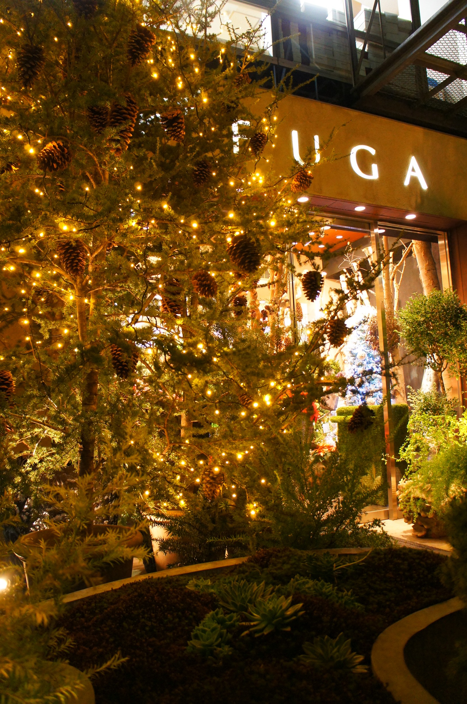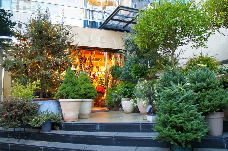 X’masに備えFUGAでは、ツリーやポインセチアが店内を彩り、