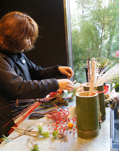 お正月のお花をお求めのお客様に長く楽しんで頂くため相談にのる者。