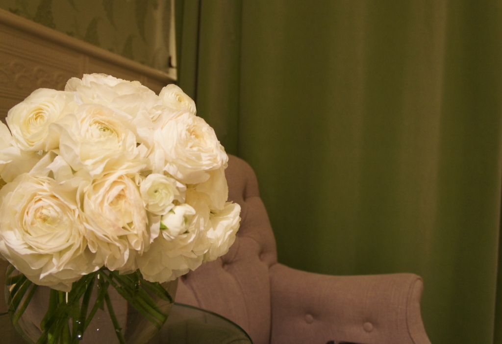 市場で白いラナンキュラスを今回のためにと買い集め、